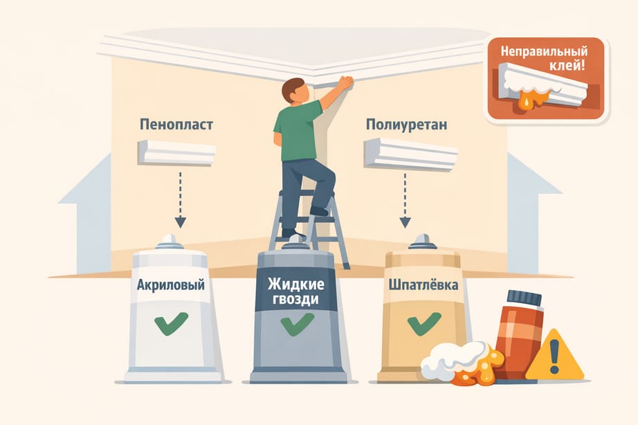 «Неправильный клей — и через неделю ваш плинтус окажется на полу. А если пенопласт встретит растворитель — даже раньше. Это не страшилка, это практика каждого второго переклея».